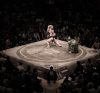 Philippe Marinig : Quand j’ai assisté à cette première journée de tournoi, j’ai essayé de faire le maximum d’images mais je n’étais pas assez près et je ne cherchais pas à faire de la photo sportive. C’est vite devenu frustrant alors j’ai cherché une autre place et je me suis retrouvé assis à côté d’une Japonaise où je suis resté jusqu’à la fin. Cette femme avait l’air fan de sumo et semblait bien s’y connaître, mais la discussion n’était pas aisée. J’ai continué de faire des images malgré tout et à la fin je lui ai donné une invitation pour mon exposition « Natural Ecstasy » à l’Institut français. Elle est venue et il s’est avéré qu’elle parlait anglais ; je lui ai expliqué ma démarche et elle m’a expliqué qu’elle pouvait me présenter une heya car elle connaissait l’épouse de l’oyakata. C’est la pièce clé de mon histoire et ça s’est fait par coïncidence.
