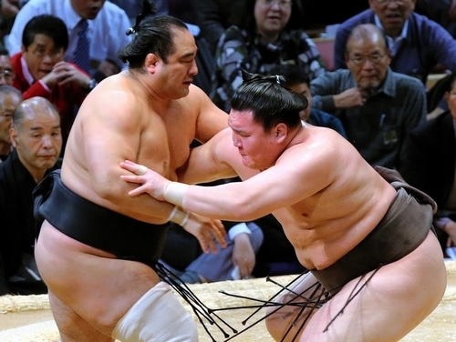 Les combats des maegashira, il faut bien le reconnaître, ne nous ont pas réservé de grandes surprises et c’est avec un sentiment partagé entre la joie de retrouver nos lutteurs préférés et une certaine monotonie qu’ils se sont succédé. Pour vivre des moments forts il aura presque fallu attendre l’arrivée des ôzeki. Enfin pas tout à fait puisque la première surprise arrivera avec la défaite du sekiwake Myogiryû contre le maegashira 3 Tochinoshin.