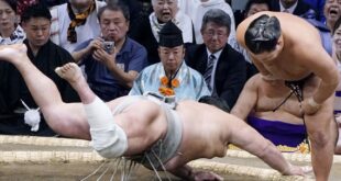 J7 – Le yokozuna Onosato atteint les 7 victoires en s’imposant face à Ura Le yokozuna Onosato a conservé sa première place au classement général du Kyushu bashô samedi en dominant son adversaire Ura et en portant son score à 7-0, lors de la septième journée du tournoi au Kokusai Center de Fukuoka. Après avoir dominé les six premiers jours, …