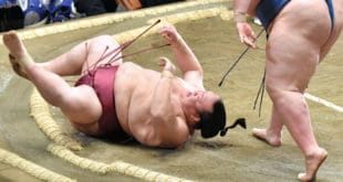 L’hécatombe continue pour Kisenosato Un combat de 7 secondes a peut-être décidé du sort de Kisenosato, qui a subi sa troisième défaite consécutive ce mardi. Dans l’avant-dernier combat, Kisenosato a été rapidement vaincu par Tochiozan (1-2). Le yokozuna japonais a tenté de projeter son adversaire, mais s’est retrouvé au bord de la paille alors que Tochiozan le faisait pivoter. Cette défaite était …