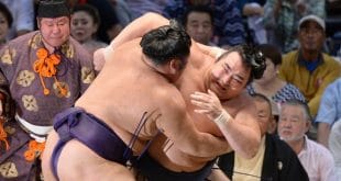 Mitakeumi remporte sa onzième victoire Le sekiwake Mitakeumi a remporté sa 11e victoire d’affilée, conservant son avance dans ce tournoi. Mitakeumi a remporté une victoire facile contre Kaisei (7-4). Le sekiwake toujours invaincu a été poussé par son adversaire au moment de la charge initiale, mais il a rapidement repris le dessus avant de forcer le Brésilien à sortir. Dans …