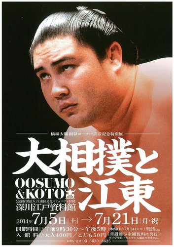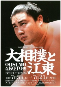 Cette exposition revient sur l’empreinte qu’a laissée le sumo dans cet arrondissement et les 7 heya actuelles qui y sont toujours installées. Une galerie de photos présente les tombes des yokozuna qui reposent à Koto dont celle de Taiho. Le centre culturel lui rend hommage en présentant quelques-uns de ses effets personnels ainsi qu’une collection de clichés qui retrace sa vie. Plusieurs de ses pièces proviennent du musée de Taiho qui se situe à Hokkaido et dont Dosukoi parle dans une page spéciale : Le musée de Taiho.
