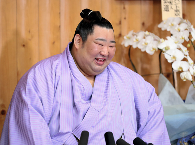 After spending 12 of sumo’s previous 13 grand tournaments in the second-tier juryo division, the rotund 33-year-old energized the sumo world by winning his first title with a 14-1 record. After completing his victory with a win over ozeki Takakeisho, the 1.81-meter, 188-kilogram wrestler broke down in tears of joy.