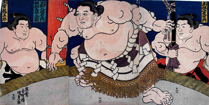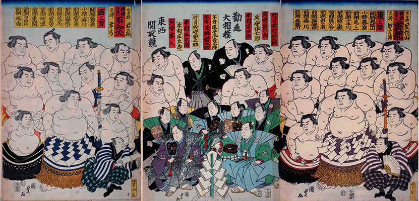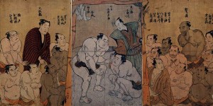 L’histoire du sumo est longue, mais seulement 71 lutteurs sont parvenus à atteindre le grade suprême de yokozuna depuis la création de ce titre en 1789, le dernier en date est Kakuryû en mars dernier. La période Edô a véritablement été l’âge d’or de l’épanouissement de la culture japonaise due à l’isolement total du pays. C’est durant l’ère Edo que le sumo s’est développé pour se s’approcher de la forme que nous lui connaissons aujourd’hui et la visite de cette exposition nous fait prendre conscience de ce fait puisqu’on y retrouve tous les ingrédients du sumo moderne.