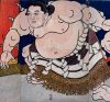 La période Edo a vu en deux siècles et demi la nomination de seulement 12 yokozuna même si pour les deux premiers, Akashi Shiganosuke et Ayagawa Gorôji, leur promotion a été faite qu’à titre posthume. Le premier vrai yokozuna avéré est le très célèbre Tanikaze Kajinosuke pour qui cette exposition rend largement hommage. L’autre lutteur qui a vraiment marqué son époque et même l’histoire du sumo en général est le légendaire Raiden, le rikishi le plus fort ayant existé !